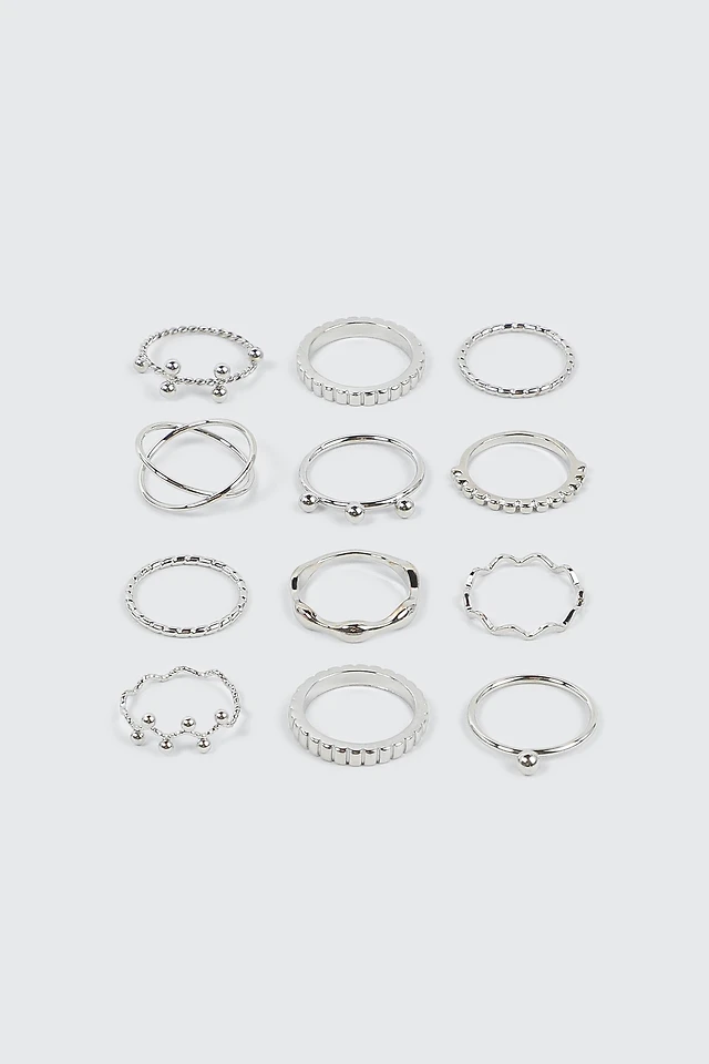 Ardene 12-Pack Wave & Sphere Rings in Silver | Size