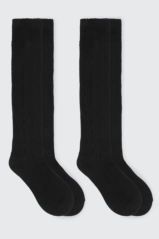 Ardene 2-Pack Knee High Cable Knit Socks in | Polyester/Spandex