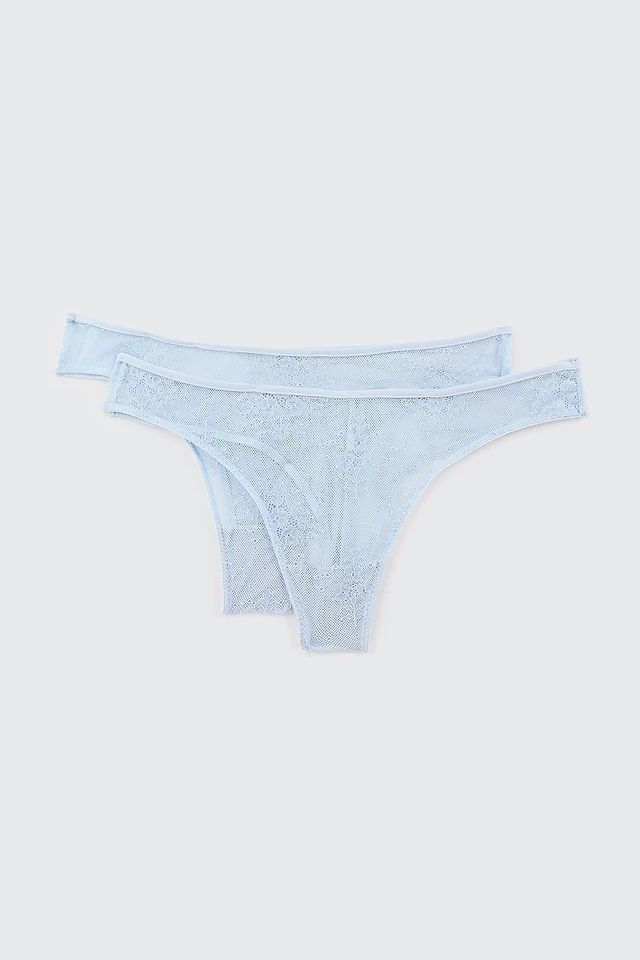 Ardene 2-Pack Lace Cheeky Panty Panties in Light Blue | Size | Nylon/Elastane
