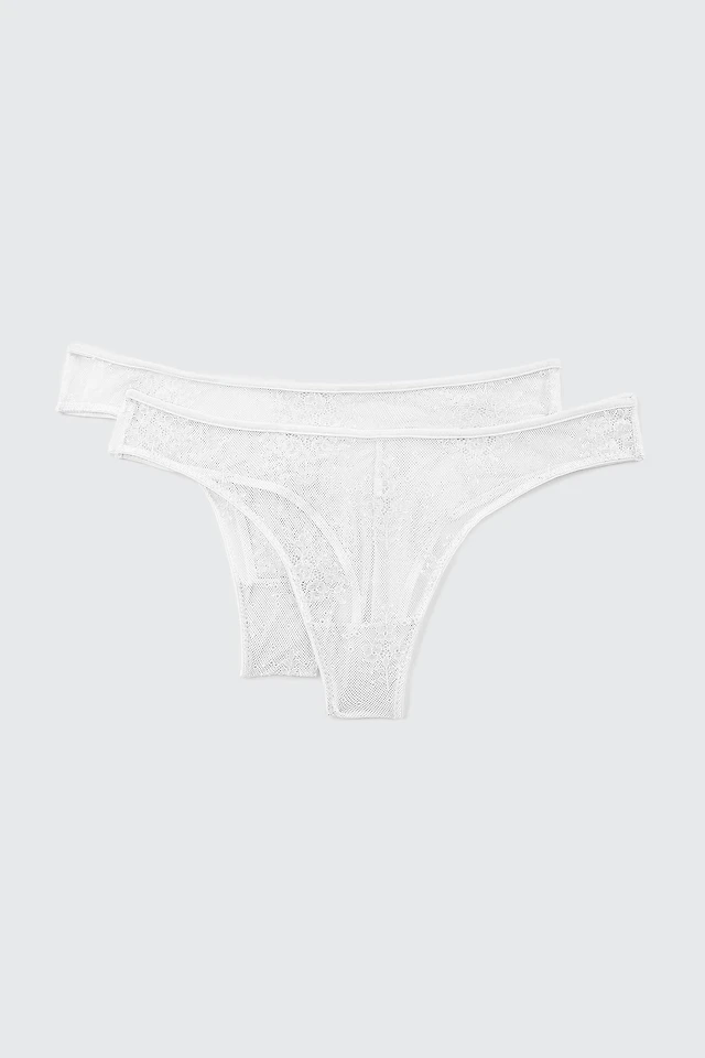 Ardene 2-Pack Lace Cheeky Panty Panties in White | Size | Nylon/Elastane