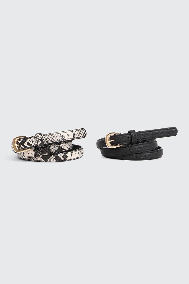 Ardene 2-Pack Snake & Solid Belts in Black | Size Small | Faux Leather