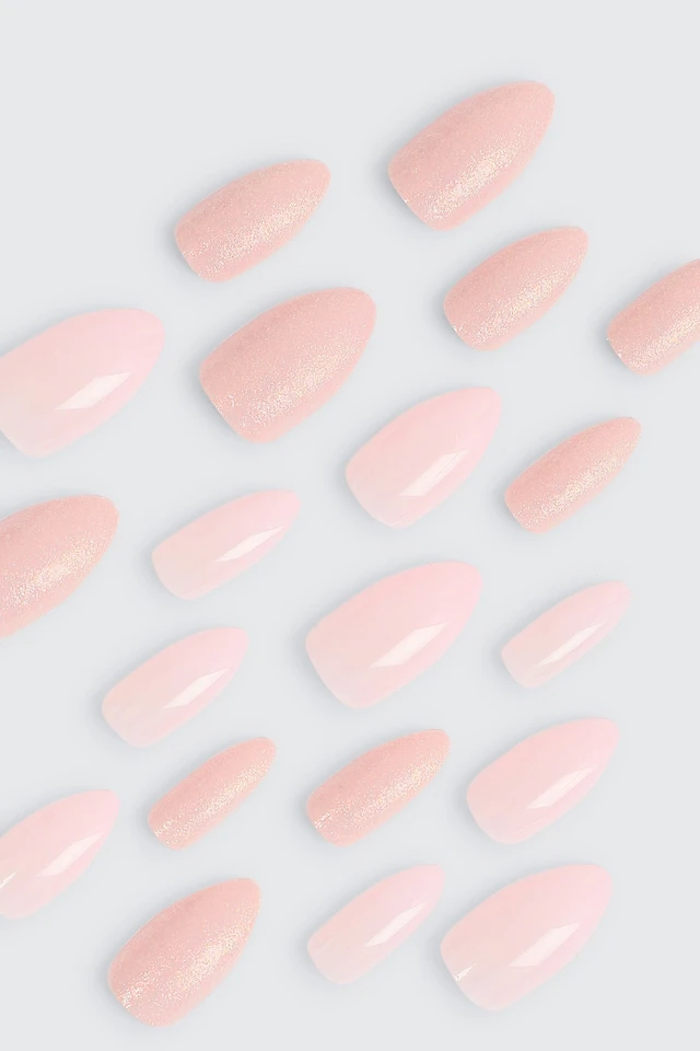 Ardene 20-Pack Glitter Almond Fake Nails in Light Pink