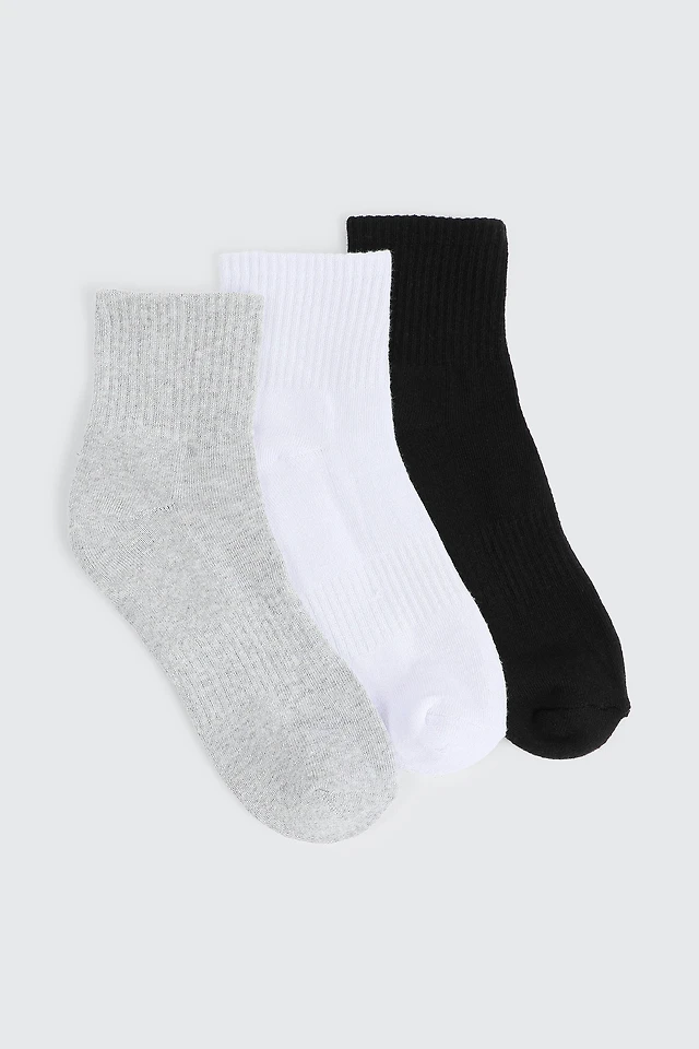Ardene 3-Pack Athletic Demi Crew Socks in Grey | Polyester/Cotton/Elastane