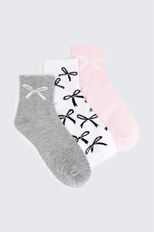 Ardene 3-Pack Bow Demi Crew Socks in Light Pink | Polyester/Spandex