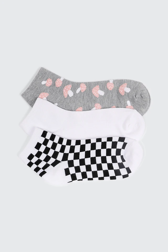 Ardene 3-Pack Checker & Mushroom Demi Crew Socks | Polyester/Spandex