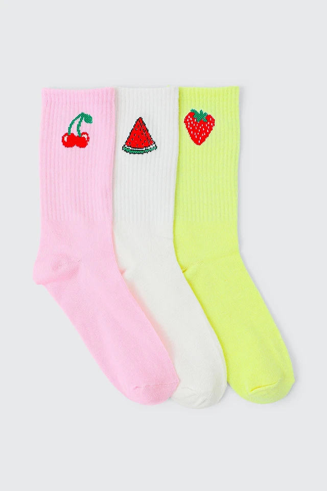Ardene 3-Pack Fruit Crew Socks in Light Pink | Polyester/Spandex