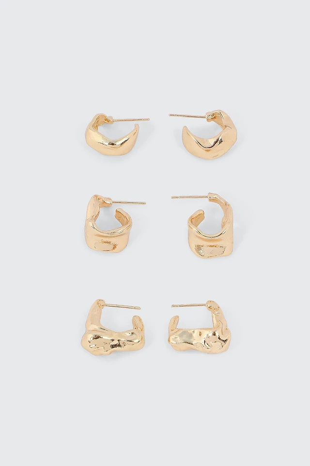 Ardene 3-Pack Irregular Hoops in Gold | Stainless Steel