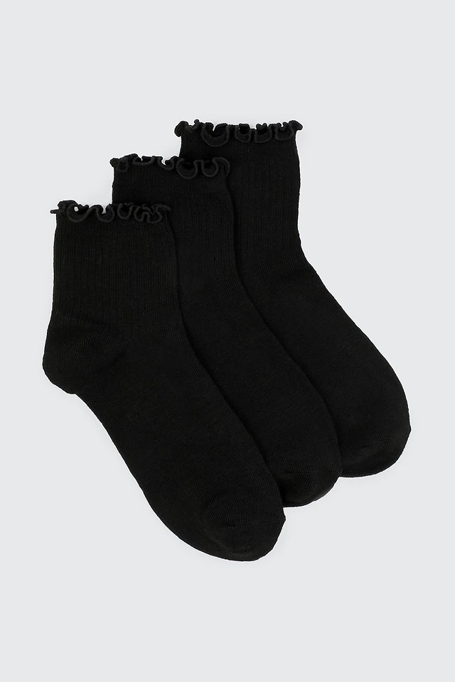 Ardene 3-Pack Lettuce Edge Demi Crew Socks in Black | Polyester/Spandex