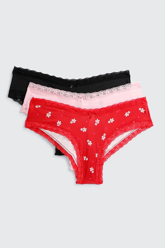 Ardene 3-Pack Microfiber Cheeky Panty Panties in Red | Size | Polyester/Elastane