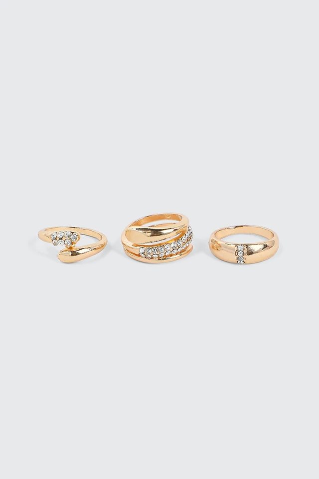 Ardene 3-Pack Pave Rings in Gold | Size Small