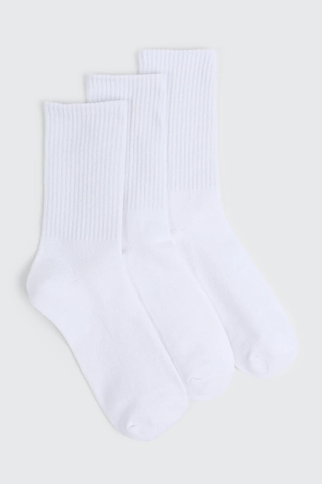 Ardene 3-Pack Ribbed Crew Socks in White | Polyester/Spandex