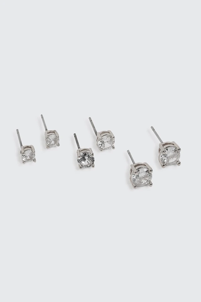 Ardene 3-Pack Round Cubic Zirconia Stud Earrings in Silver | Stainless Steel