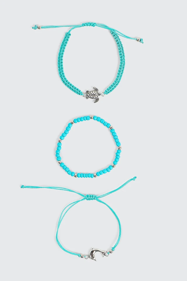 Ardene 3-Pack Sea Creature Beaded Bracelets in Medium Green