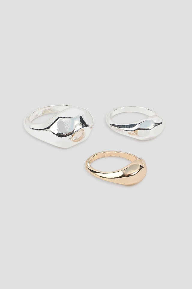 Ardene 3-Pack Thick Rings in Silver | Size Small