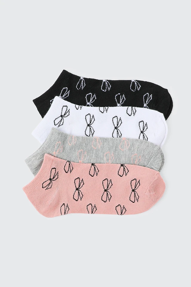Ardene 4-Pack Bow Ankle Socks in Light Pink | Polyester/Spandex