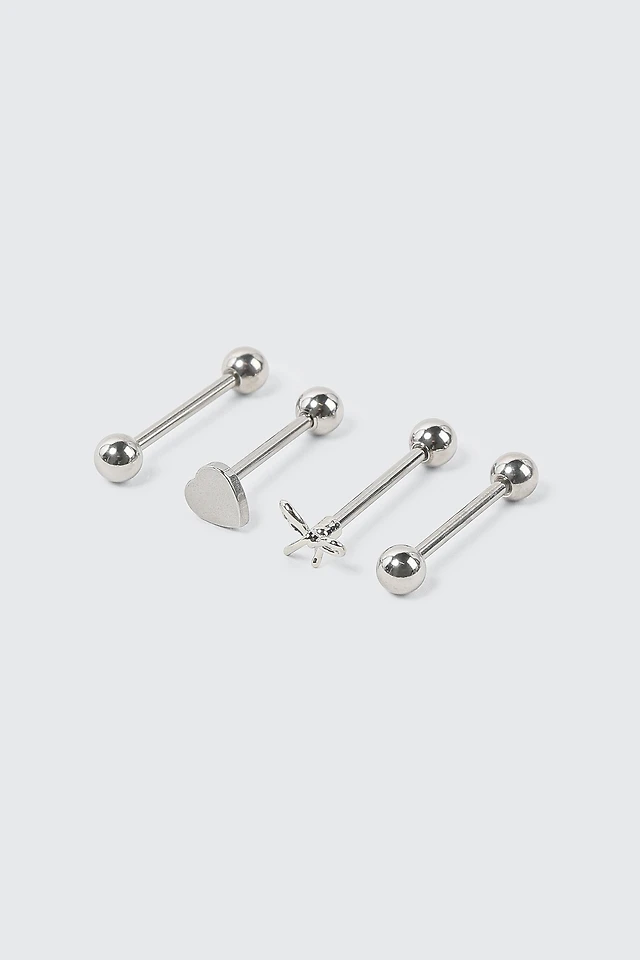 Ardene 4-Pack Bow & Heart Tongue Piercings in Silver