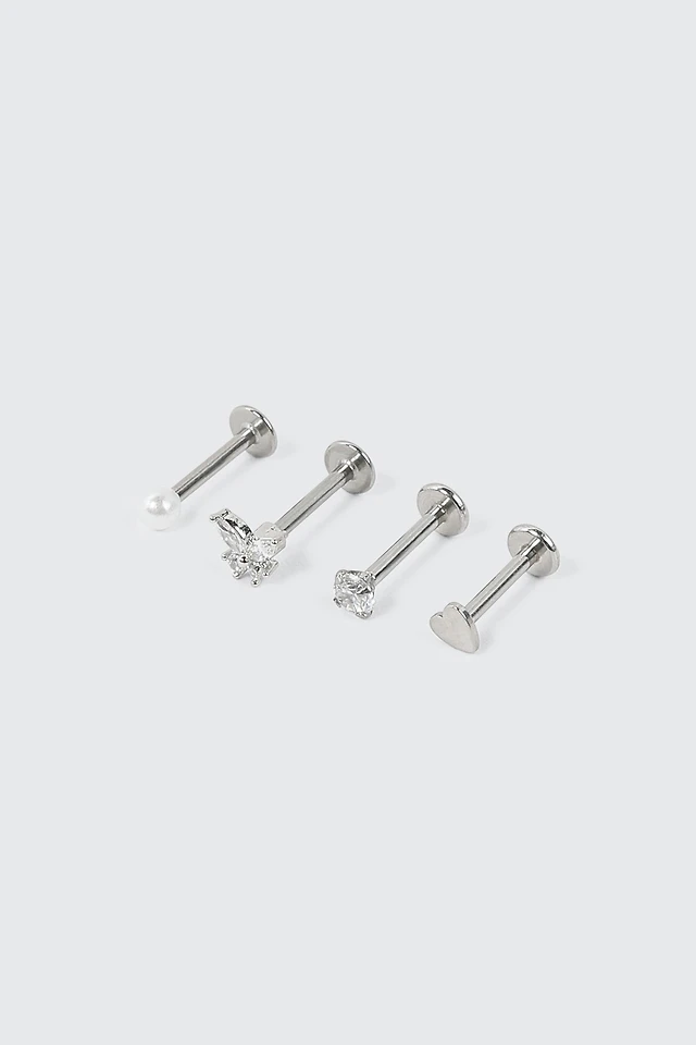 Ardene 4-Pack Butterfly & Heart Labret Piercings in Silver