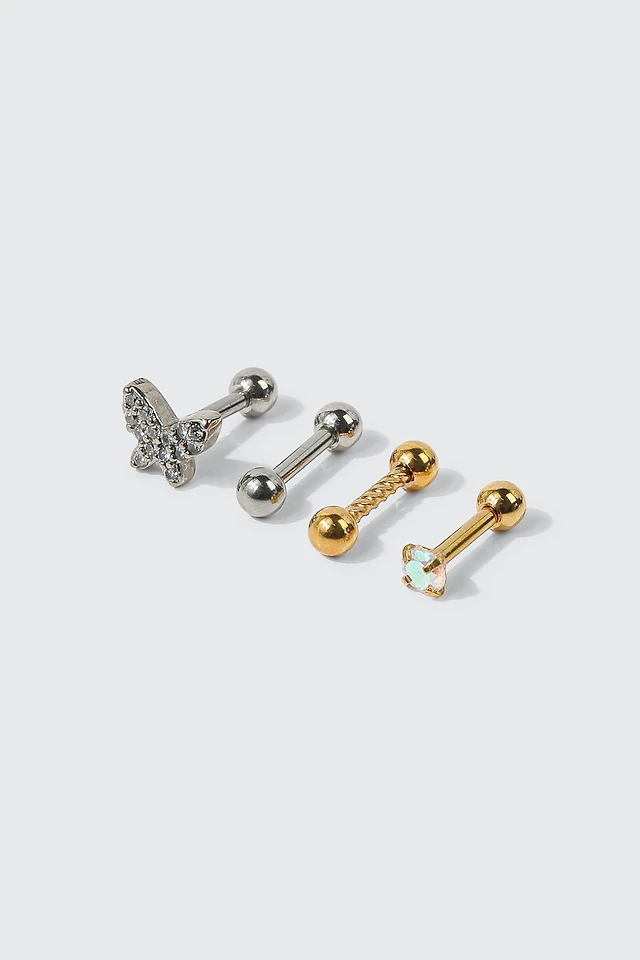 Ardene 4-Pack Cartilage Barbell Piercings in Gold