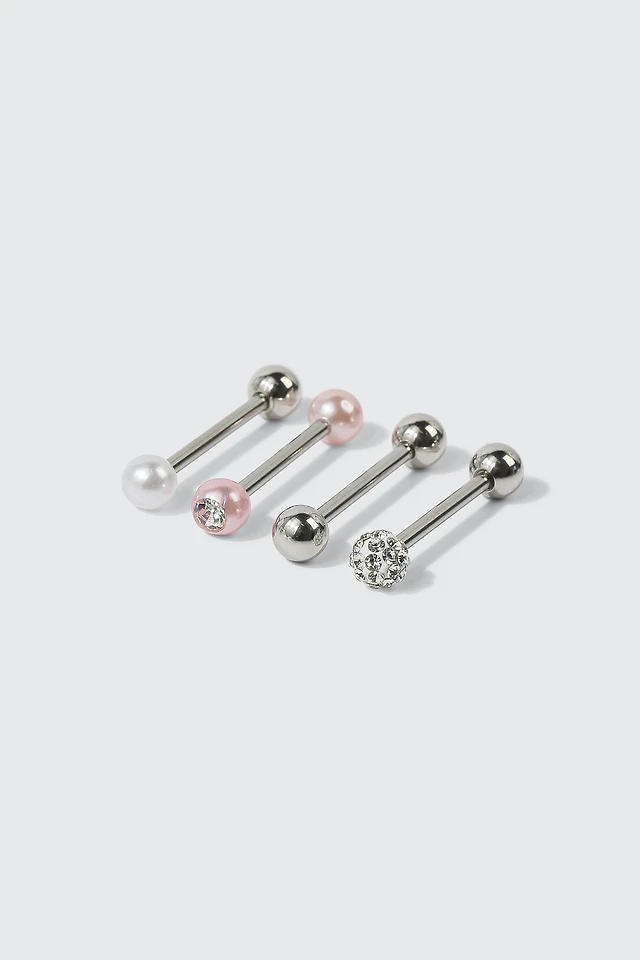 Ardene 4-Pack Embellished Tongue Piercings in Silver