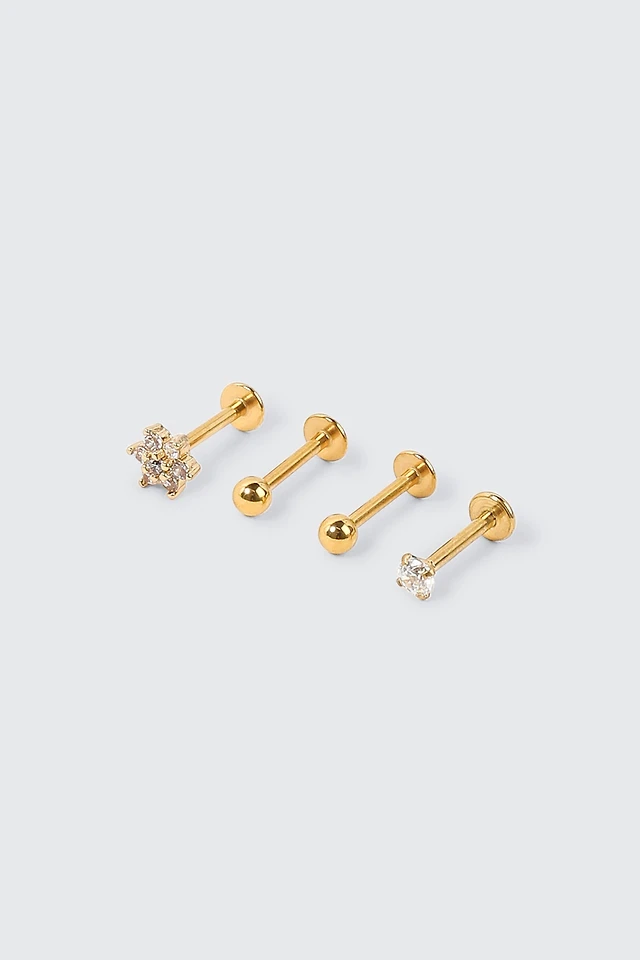 Ardene 4-Pack Flower 14K Gold Plated Labret Piercings