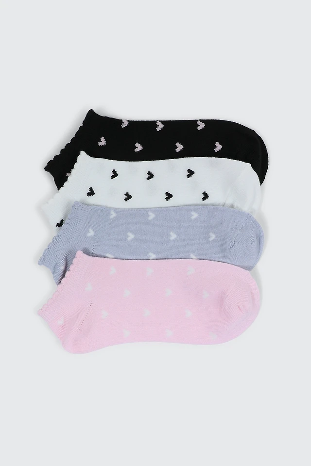 Ardene 4-Pack Small Heart Ankle Socks | Polyester/Spandex