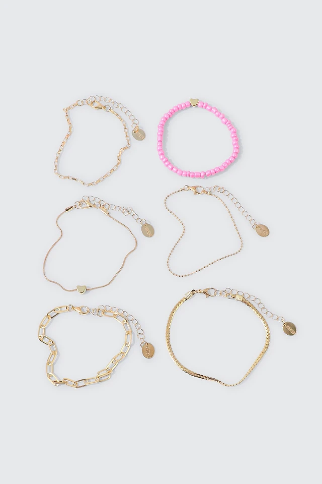 Ardene 5-Pack Chain & Bead Bracelets in Gold