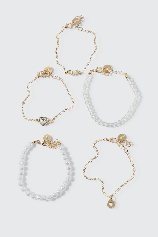 Ardene 5-Pack Daisy & Butterfly Bracelets in Gold