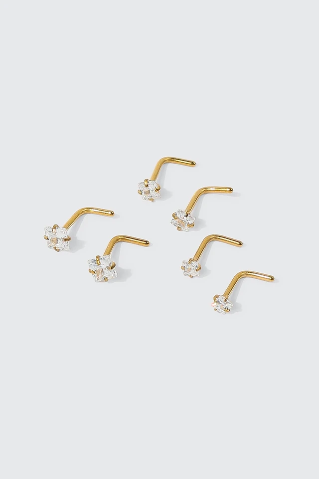 Ardene 6-Pack 18K Gold Plated Square Stone Nose Studs