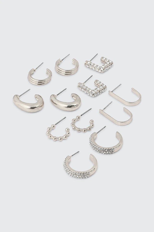 Ardene 6-Pack Assorted Hoop Earrings in Silver | Stainless Steel