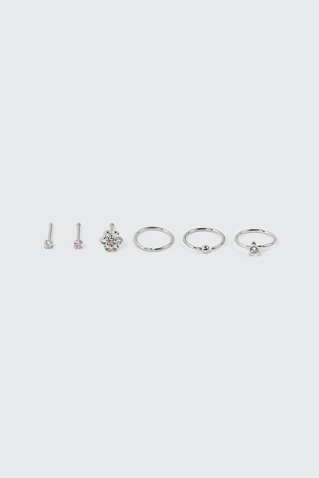 Ardene 6-Pack Flower Nose Piercings in Silver