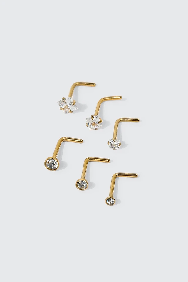 Ardene 6-Pack Square & Round Stone Nose Studs in Gold