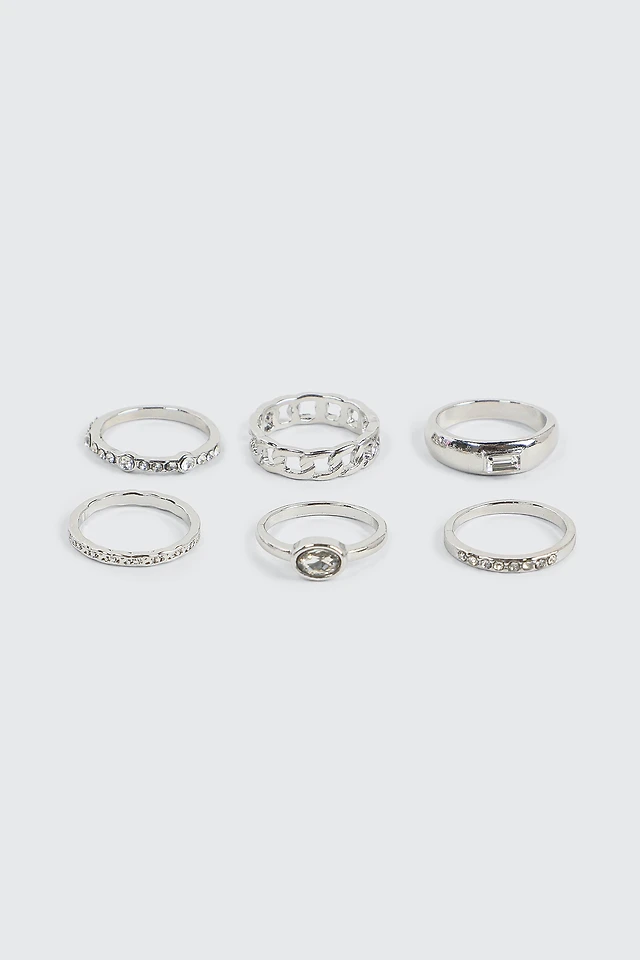 Ardene 6-Pack Stone & Chain Rings in Silver | Size