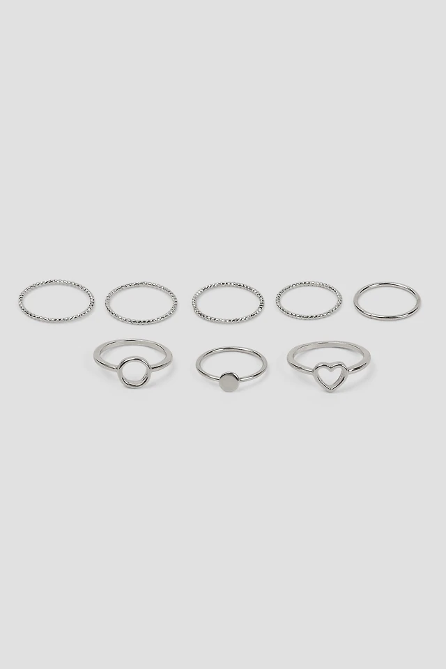 Ardene 8-Pack of Minimalist Rings in Silver | Size Small | Eco-Conscious | 100% Recycled