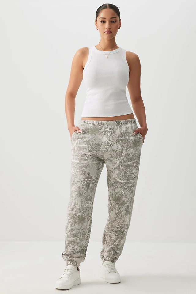 Ardene Baggy Camouflage Sweatpants in Grey | Size Large | Polyester/Cotton | Fleece-Lined