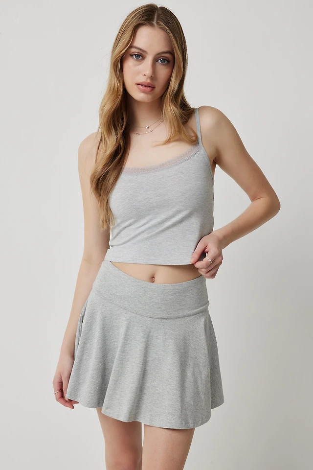 Ardene Basic Lace Trim Tank Top in Light Grey | Size | Cotton/Elastane | Eco-Conscious