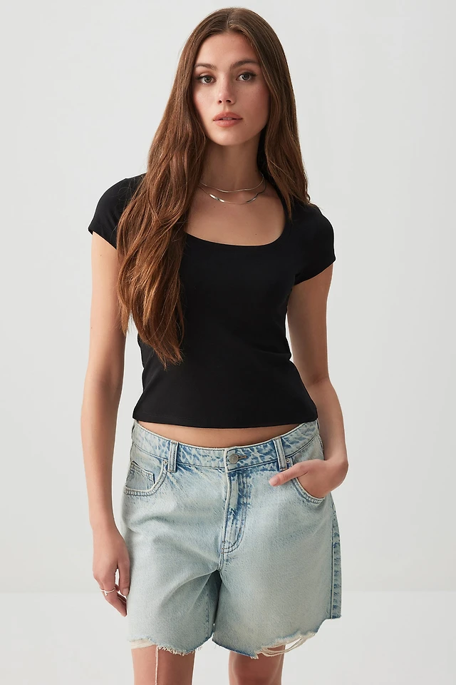 Ardene Basic Short Scoop Neck T-Shirt in | Size | Cotton/Elastane | Eco-Conscious
