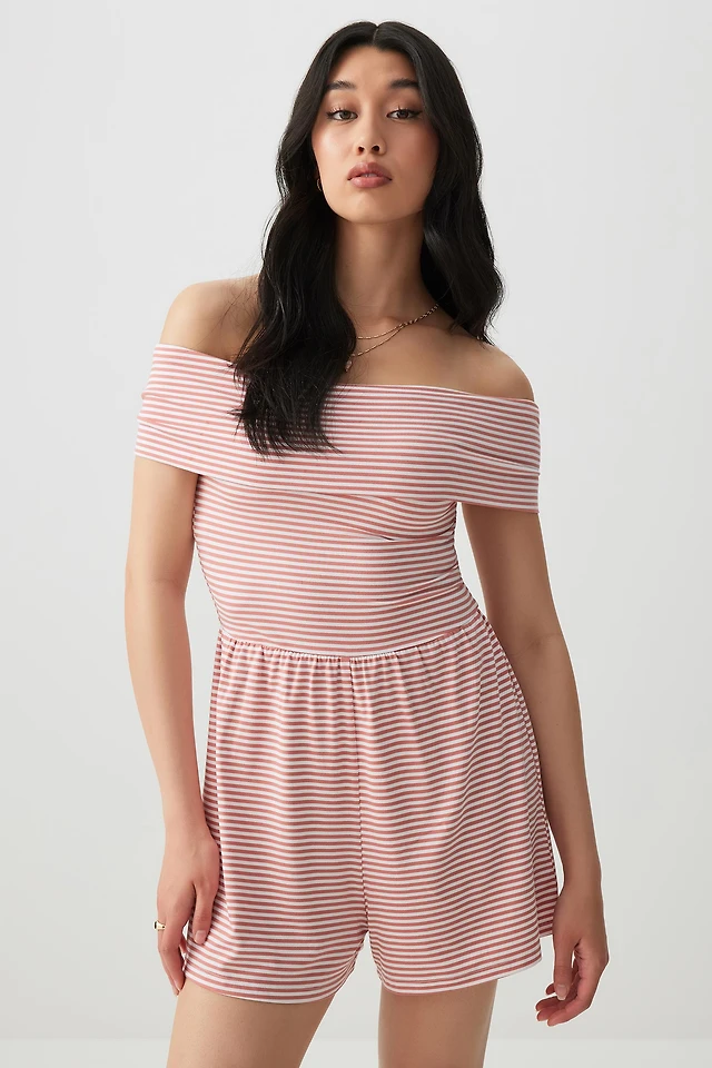 Ardene Basic Super Soft Off Shoulder Romper in | Size | Polyester/Spandex | Eco-Conscious