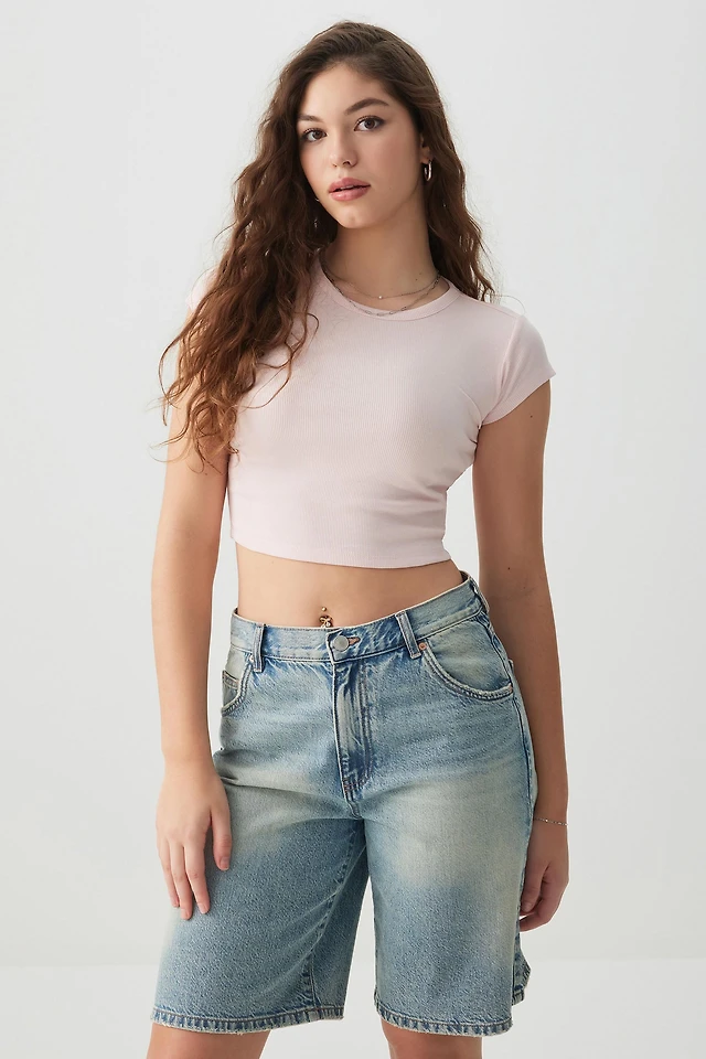 Ardene Basic Ultra Crop Crew Neck T-shirt in Light Pink | Size | Cotton/Elastane/Viscose | Eco-Conscious