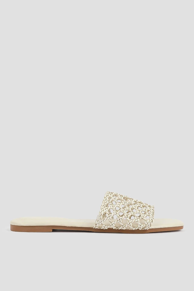 Ardene Basket Weave Flat Sandals in White | Size 11 | Faux Leather | Eco-Conscious