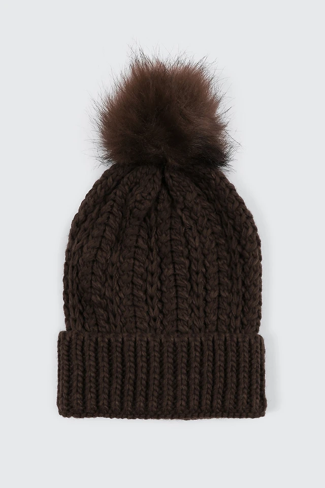 Ardene Beanie with Pompom in Brown | 100% Acrylic