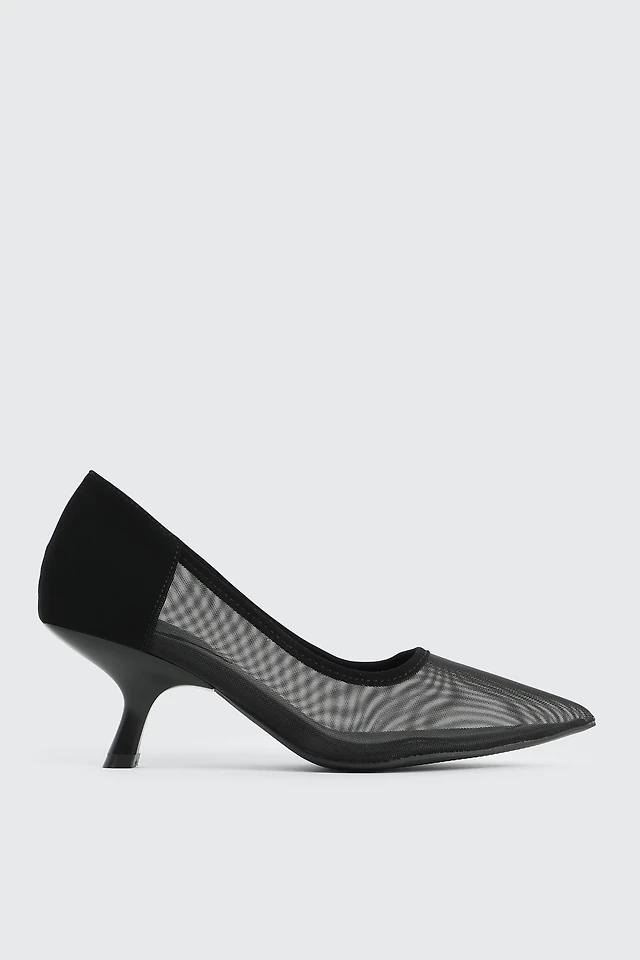 Ardene Black Mesh Pumps | Size | Faux Leather