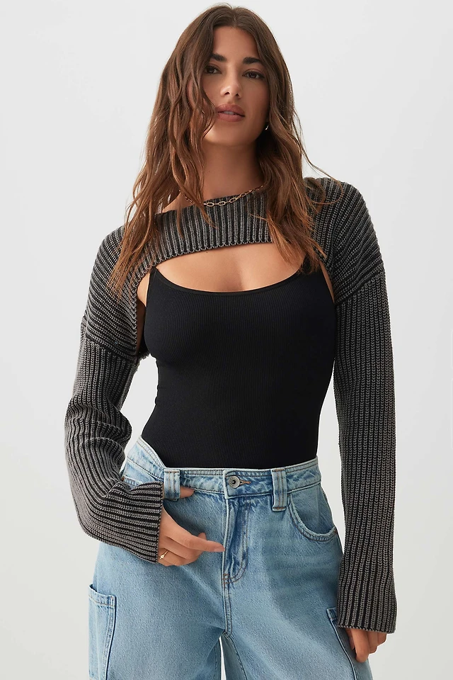 Ardene Boat Neck Shrug Sweater in Black | Size Small | 100% Cotton