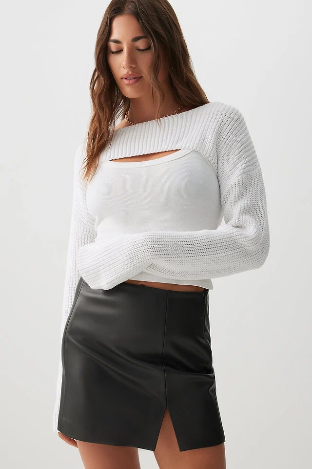 Ardene Boat Neck Shrug Sweater in Off-White | Size | 100% Cotton