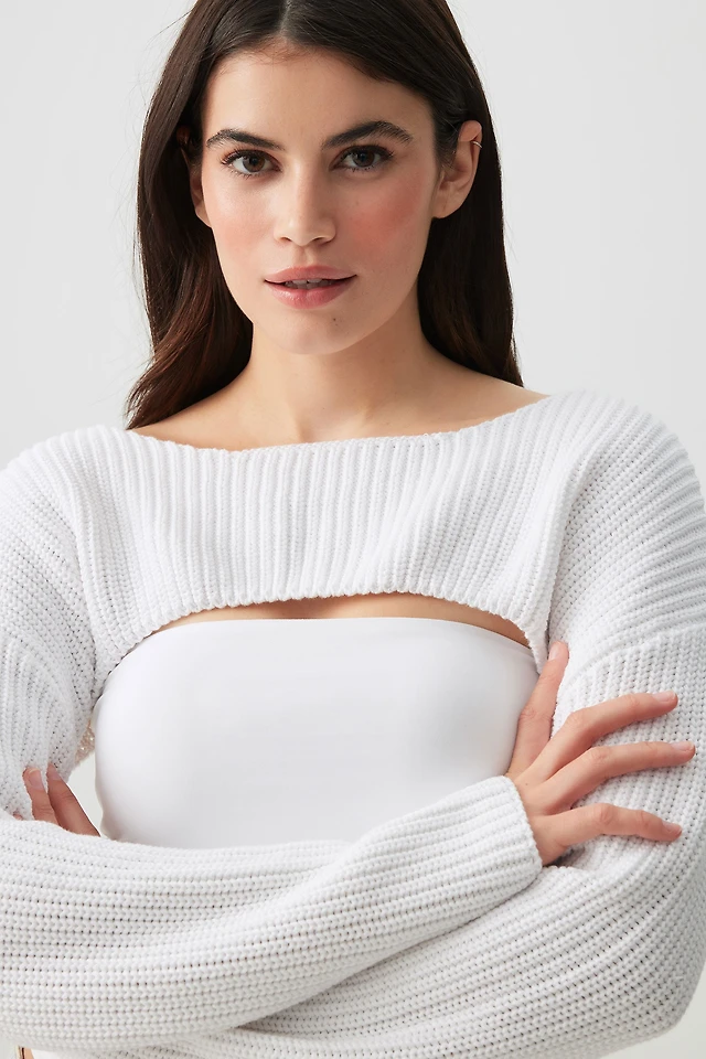 Ardene Boat Neck Shrug Sweater in White | Size Large | 100% Cotton