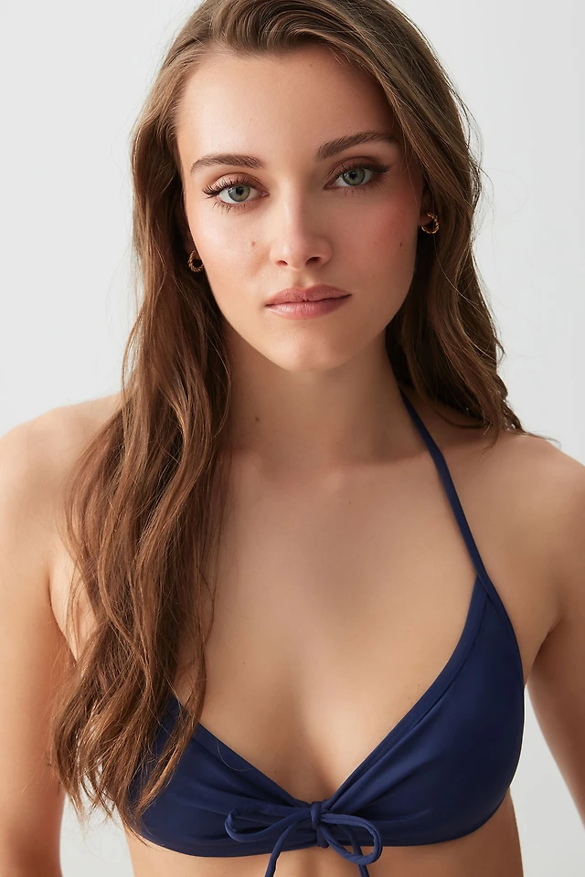 Ardene Bow Front Bandeau Bikini Top in Dark Blue | Size Medium | Polyester/Nylon/Spandex | Microfiber