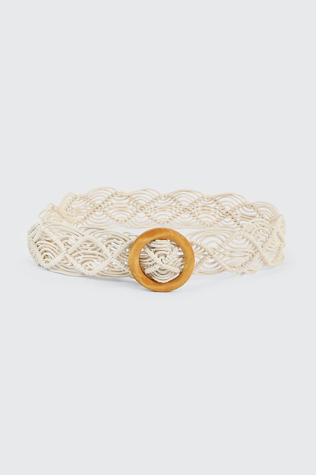 Ardene Braided Belt with Wooden Buckle in White | Size Small | Polyester