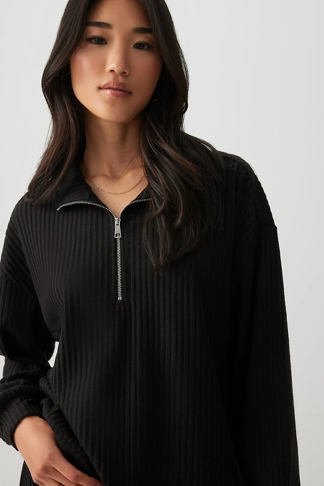 Ardene Brushed Knit 1/4 Zip Sweater in Black | Size | Polyester/Rayon/Elastane