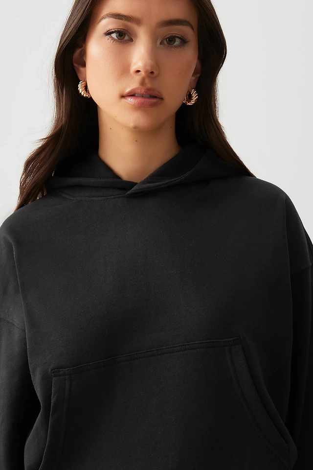 Ardene Bubble Hem Hoodie in Black | Size | Polyester/Cotton | Fleece-Lined