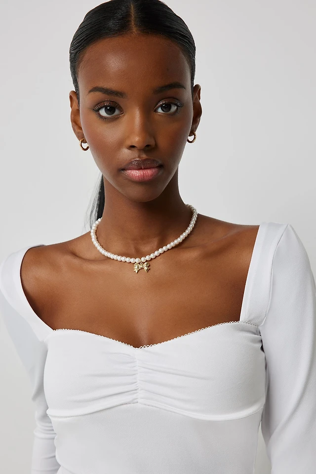 Ardene Bustier Seam Long Sleeve Top in White | Size | Polyester/Elastane