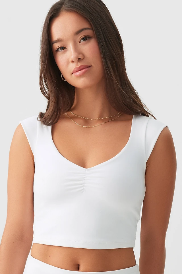 Ardene Butter V-Neck Cap Sleeve T-Shirt in White | Size | Nylon/Elastane
